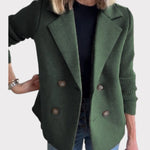 Το Amora Blazer είναι όπου η διαχρονική ραφή συναντά την σύγχρονη άνεση. Με το δομημένο σχέδιο με διπλό κούμπωμα και τα μαλακά πλεκτά μανίκια, αυτό το κομμάτι είναι εξίσου πολυμορφικό όσο και κομψό. Ντύστε το με στυλ ή φορέστε το πιο χαλαρά—οποιαδήποτε επιλογή, θα τραβήξετε τα βλέμματα.