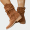 Γυναικείες casual μπότες σε suede υφή, με άνετη εφαρμογή και μοντέρνα λεπτομέρεια στη μέση. Ο χαλαρός σχεδιασμός του άξονα προσφέρει boho χαρακτήρα, ενώ το χαμηλό τακούνι τις καθιστά ιδανικές για καθημερινή χρήση. Το πρακτικό φερμουάρ στο πλάι εξασφαλίζει εύκολη εφαρμογή και αφαίρεση.