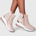 Γνωρίστε τις μπότες Nellie, σχεδιασμένες για να συνδυάζουν την άνεση υποστήριξης και το στυλ έτοιμο για τον χειμώνα. Με ένα μαλακό εσωτερικό φόρεμα, λειτουργικό πλάγιο φερμουάρ και μια σόλα με κλίση για άνεση όλη την ημέρα, αυτές οι μπότες προσφέρουν τη ζεστασιά που χρειάζεστε και την εμφάνιση που αγαπάτε. Είτε βγείτε για μια βόλτα είτε αντιμετωπίσετε μια πολυάσχολη μέρα, η Nellie σας κρατά σταθερούς, με στυλ και άνεση.