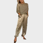 Σατινέ Σετ με Χαλαρή Μπλούζα και Παντελόνι Cargo