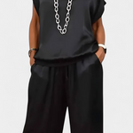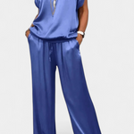 Εκλεπτυσμένο αλλά χαλαρό, το σετ Blasa συνδυάζει μια ροή μπλούζα με παντελόνια φαρδιάς γραμμής για να δημιουργήσει μια ελαφριά και ευέλικτη σιλουέτα. Σχεδιασμένο για όσους αναζητούν άνεση χωρίς να θυσιάζουν την κομψότητα, είναι ιδανικό για δραστήριες ημέρες ή στιγμές χαλάρωσης με στυλ.