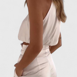 • Αμάνικο τοπ με ρέουσα γραμμή και μινιμαλιστικό στυλ