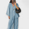 Jacqueline - Casual τοπ με V λαιμόκοψη και παντελόνι δίδυμο