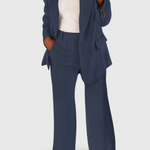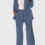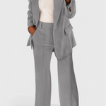 Μεταφέρεστε χωρίς κόπο από το γραφείο στον ελεύθερο χρόνο με το Σετ Kaia 2 Τεμαχίων. Κατασκευασμένο από ένα υπερ-μαλακό και αναπνεύσιμο ύφασμα, αυτό το δίδυμο σακακιού και παντελονιού συνδυάζει μια εφαρμοστή δομή με μια χαλαρή κομψότητα. Ιδανικό για τη σύγχρονη γυναίκα που εκτιμά την άνεση χωρίς να θυσιάζει το στυλ.