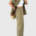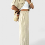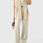 Σχεδιασμένο για να κινείται μαζί σου, το σετ Lani προσφέρει μια αίσθηση κομψότητας στην καθημερινή σου ντύσιμο. Με τον σχεδιασμό του από πουκάμισο και ρευστά παντελόνια, αυτό το ελαφρύ σετ προσφέρει άνεση και αναπνοή χωρίς να θυσιάζει το στυλ. Από brunch μέχρι ημέρες χαλάρωσης, είναι η επιλογή σου για μια διακριτική κομψότητα.