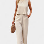 Απαλή και γεμάτη γοητεία, το Σετ Lavinia προσφέρει μια απλή κομψότητα στις ζεστές μέρες. Κατασκευασμένο από ένα ελαφρύ μείγμα λινό και βαμβάκι, αυτό το ντουέτο εμπνευσμένο από το boho είναι τέλειο για τις χρυσές ώρες, χαλαρές αποδράσεις και ξυπόλητες στιγμές κάτω από τον ήλιο.