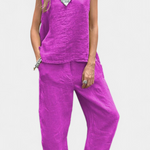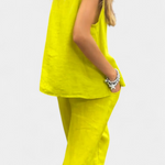 Leona Αμάνικο Σετ με Γιλέκο και Παντελόνι από Βαμβάκι και Λινό