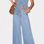 Ludovica Τζιν Σετ με Εφαρμοστό Γιλέκο και Παντελόνι με Φαρδύ Μπατζάκι