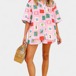 Φρέσκο, χαρούμενο και τέλειο για ηλιόλουστες μέρες. Το σετ Mariluz συνδυάζει ένα πουκάμισο κοντομάνικο με γιακά και μπροστινούς κουμπιά, μαζί με σορτς ψηλής μέσης με ελαστική ζώνη και ρυθμιζόμενο κορδόνι. Με ένα ζωντανό σχέδιο και χαλαρή σιλουέτα, αυτή η καλοκαιρινή εμφάνιση σε συνοδεύει με ελαφρότητα και στυλ.