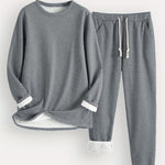 Ανακαλύψτε το ιδανικό σετ lounge για τις δροσερές μέρες, συνδυάζοντας ένα πουλόβερ σε χαλαρή γραμμή και ένα αντίστοιχο παντελόνι φόρμας. Η μαλακή επένδυση από φλις σας τυλίγει με ζεστασιά, είτε για μια ήσυχη μέρα στο σπίτι είτε για μια χαλαρή έξοδο.