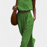 - Σχεδιασμός χωρίς μανίκια και παντελόνι με φαρδιά πόδια για μια κομψή και χαλαρή εμφάνιση