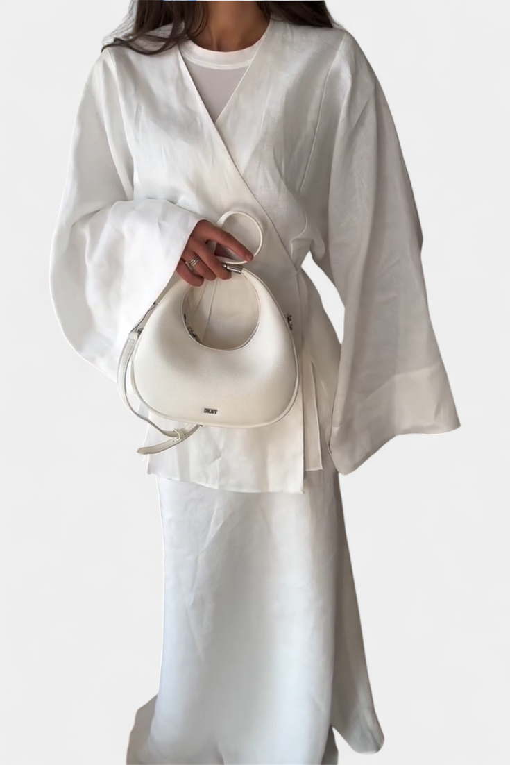 Το σετ Zelda επαναστατεί τα καλοκαιρινά σύνολα με χαλαρή κομψότητα. Αποτελούμενο από μια πουκαμίσα με λαιμόκοψη V και μια φούστα με άνοιγμα, αυτή η φρέσκια πρόταση ισορροπεί την απλότητα και το στυλ, ιδανική για ηλιόλουστες μέρες που προσκαλούν σε ελεύθερη και ελαφριά κίνηση.